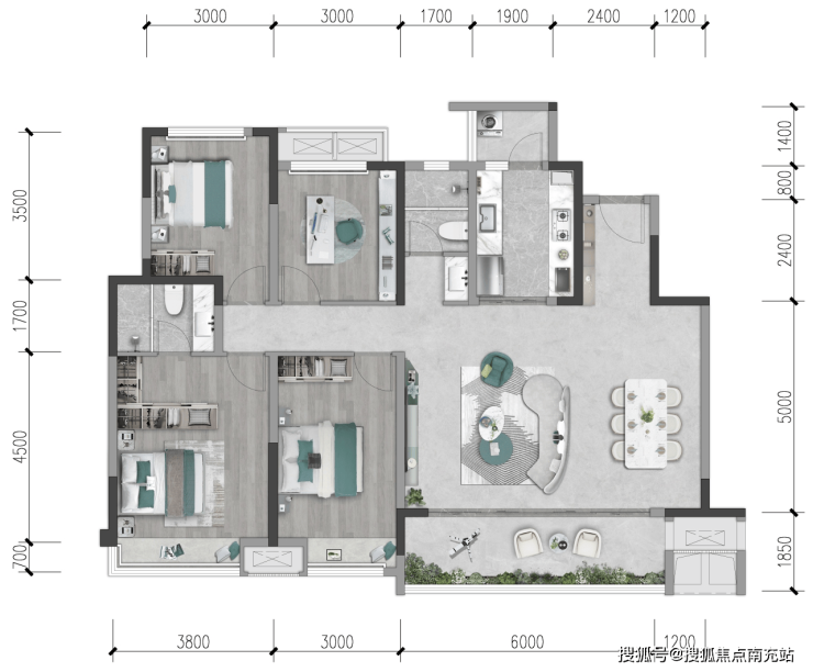 ○ 纯板式智阔三居,约16.6米全景采光面宽,极享调透视野;
