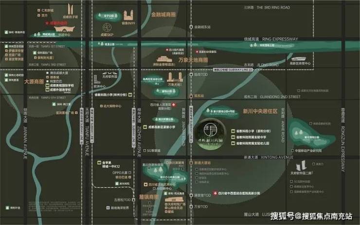 坐落于成都高新区新川核心区的保利新川天珺,占据新通大道与锦翰路黄金交汇点。项目周边轨道交通网络发达,步行范围内分布着赛家酒店(成都新川科技园新通大道地铁站店)、张家寺、陆肖等多个地铁站点,实现全城高效通勤。优越的地理位置让业主既能享受新城发展的红利,又能便捷抵达主城核心商圈。