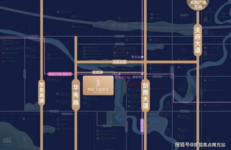 而且明信·天府壹号是目前区域在售楼盘中,距离天府五街最近的叠墅项目,直线距离约1.2公里左右(距高德地图)。从紧邻的元秀路出发,一条直路,大约2.5公里就可以到达剑南大道。对于在城南上班的朋友来说,可以说是非常便捷。