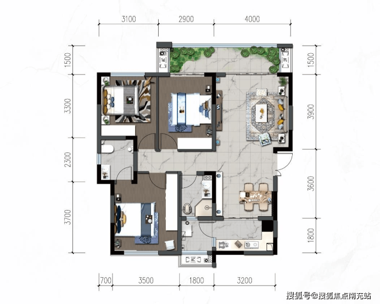 101.9m²、102.7m²(三室两厅两卫)