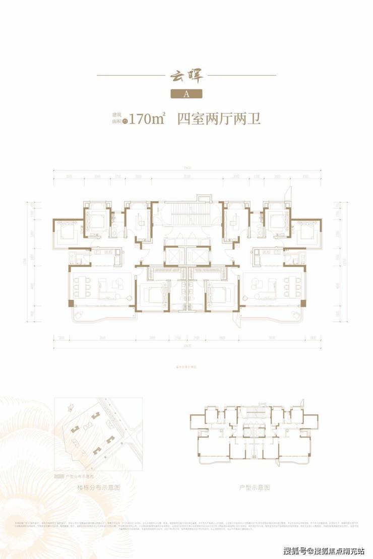 40亩的地块上,8栋高层呈围合式布局,3.0容积率。中庭约2700㎡,四分之一标准足球场大小,建筑布局算得上开阔舒适。每个单元独立成栋,也就是说,每个户型,都是端头。2T2的配置,最小170㎡的大户型,非常纯粹!