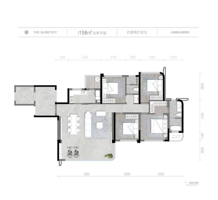 158㎡四室两厅两卫(横厅设计)