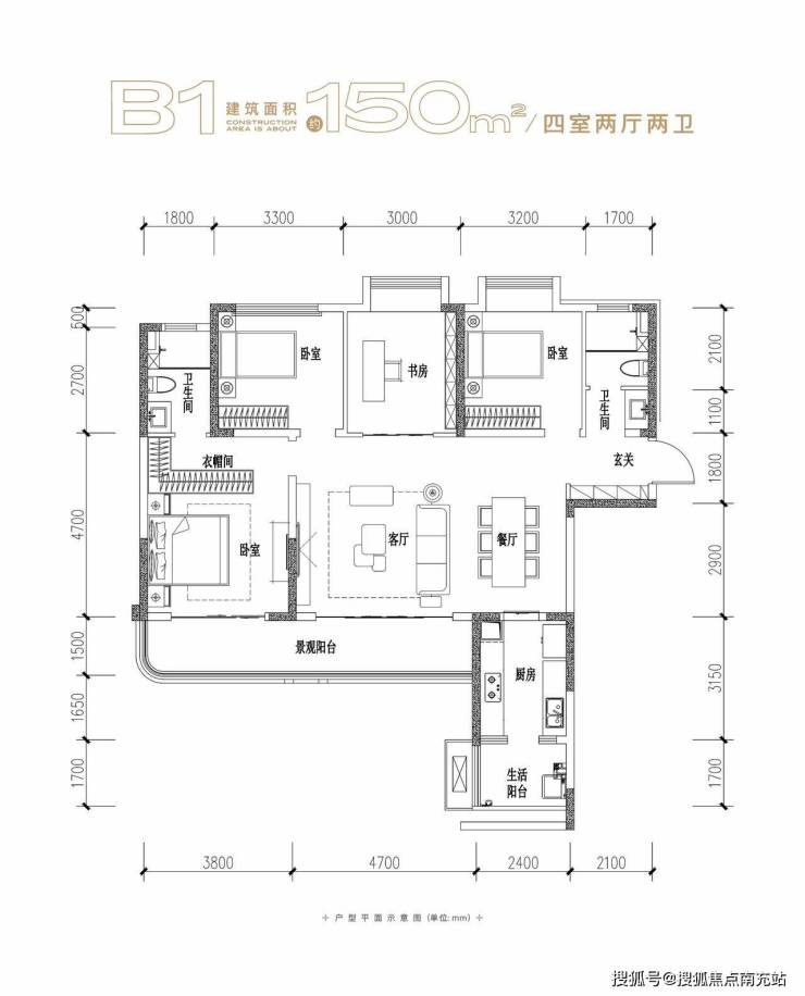 B1户型 150㎡四室两厅两卫