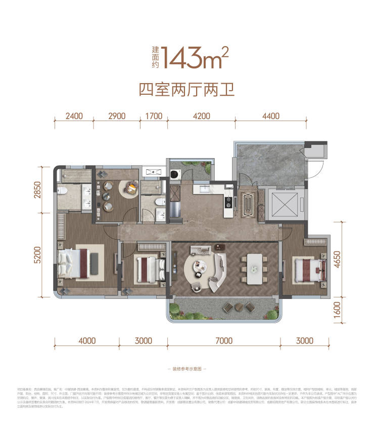 面积段:约143㎡、约170㎡全精装改善四房