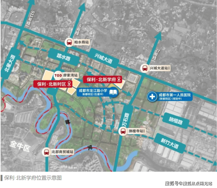 ## 【周边配套】 - **教育资源卓越**:保利·北新学府毗邻“五朵金花”之一的龙江路小学。该校被誉为成都教育质量的顶尖代表,在成都公办小学领域享有极高声誉,如同“清华北大”般备受家长瞩目。 - **商业配套可期**:多弗奥特莱斯(16万㎡在建中)、NCC红街(4万㎡在建中)以及王府井购物中心(在建中)等商业项目纷纷落地周边,未来商业氛围将愈发浓厚,能充分满足居民的各类购物、休闲需求。 - **医疗保障无忧**:规划中的成都市第一人民医院作为三甲医院,将为区域居民的健康保驾护航,提供高水平的医疗服务。 - **交通网络畅达**:项目周边交通极为便捷,5号线(廖家湾站)、天府大道、金凤凰大道、绕城高速以及在建的27号线(兴城大道站)共同构成了密集的交通网络,让居民出行畅通无阻 。 - **生态环境宜人**:毗河生态带(绿道)、源上湾公园以及在建的廖家湾公园环绕四周,丰富的生态资源为居民带来清新的空气和优美的自然景观,打造宜居生活环境。