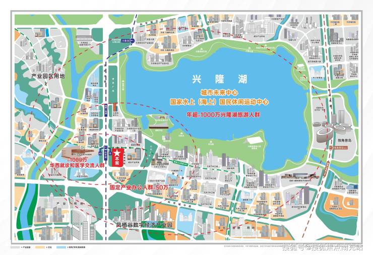 项目为 1 号线科学城站地铁上盖物业,目前兴隆湖南岸仅此一条已开通地铁线,是兴隆湖南岸旅游观光、产业办公、产业居住人口地铁交通出行的必经之路,日均地铁来往人流 1 万人次。