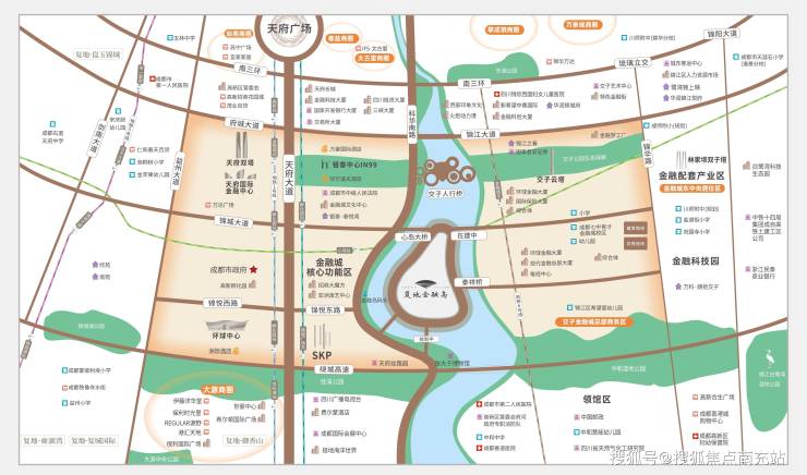 ### 【全维业态生态】复地金融岛的复合型业态布局科学且合理,高端居住区、商务集群、艺术场馆、购物中心以及风情商街等一应俱全。这里吸引了城市的精英阶层汇聚,消费能力强劲,消费层次较高。项目地处 CBD 核心区位,产生了强大的人口吸引效应,吸引了百万级人口在此聚集。