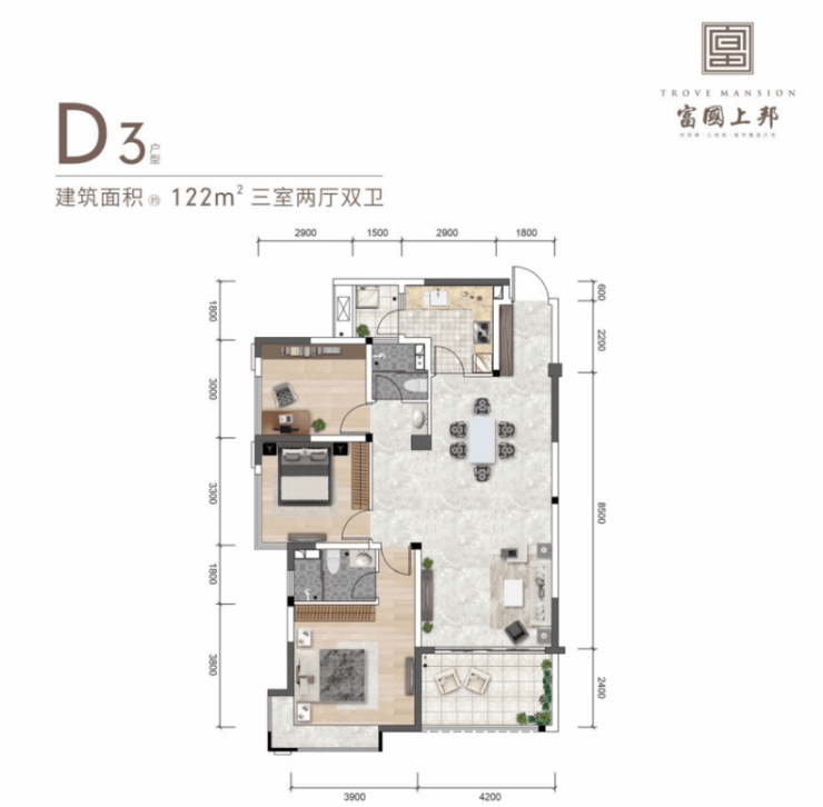建面约122平套三