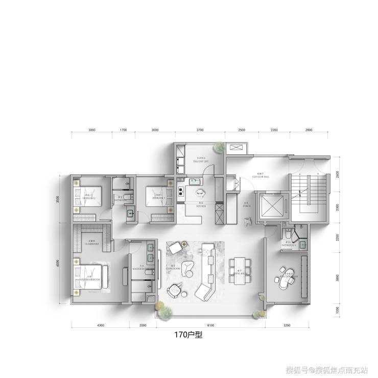 其中143-170-198m²户型有一楼带花园,顶楼有顶跃