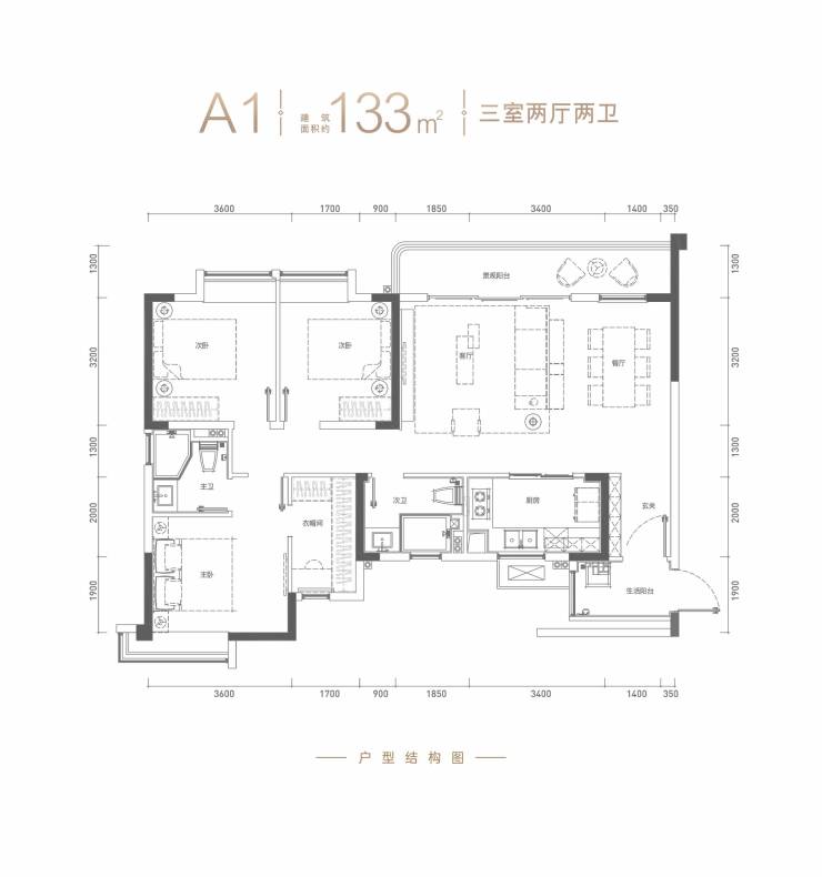 建面约133平套三