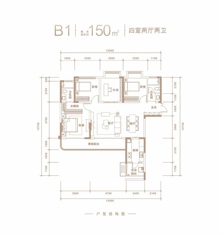 建面约150平套四