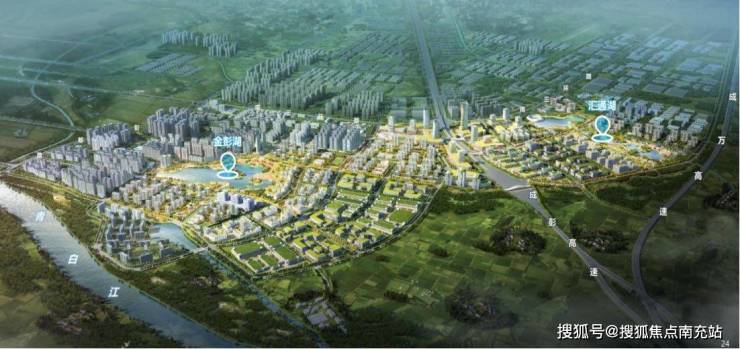 #### 区位优势显著城投置地·锦湖岸雄踞彭州南部新城核心板块。作为城市重点发展区域,汇通湖与金彭湖双湖片区已被纳入政府重点规划范畴。南部新城规划面积达5.46平方公里,未来这里将崛起成为彭州南部现代科技商贸中心以及成都北部门户商务枢纽,发展潜力无限。
