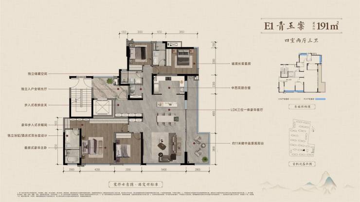 建面约191平套四