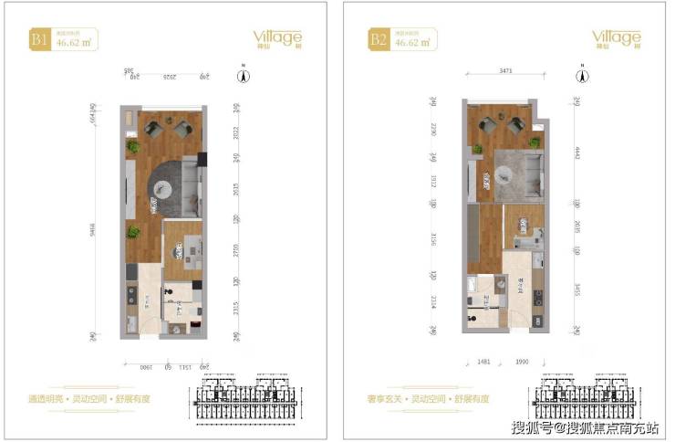 A1、A2 大通厅一室一厅(有无玄关区别)