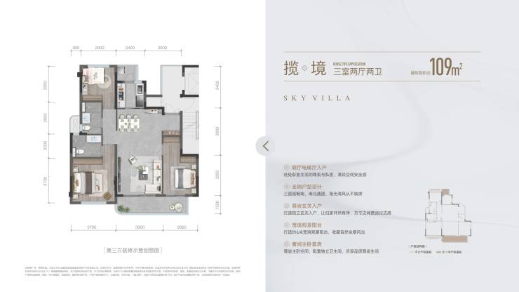建面约109平套三