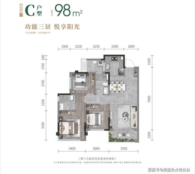 知书三房,135万元/套起,是首次置业者的首选户型。
