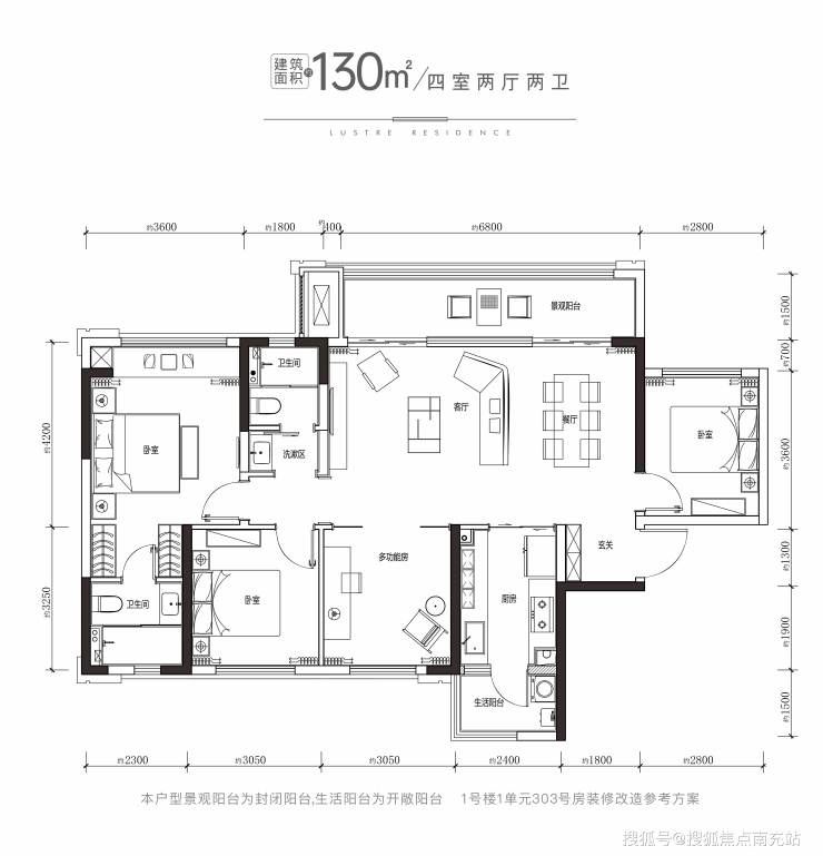 4. 130㎡四室两厅两卫,改善级横厅四房,2梯4户低密布局,约15.4米超大观景面,搭配约170米楼间距,环幕视野极佳。户型方正通透,四房布局满足三代同堂或二孩家庭。约7米横厅连接观景阳台,餐客一体大气开阔。主卧超大套房,带独立卫浴、衣帽间与全景飘窗,私密性与尊崇感拉满。全明双卫、独立玄关、U型厨房,空间功能完备,是城东改善置业优选。