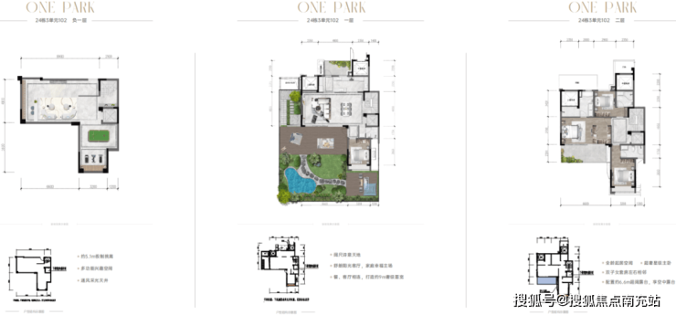 上中下叠都做到了独门独院、户户独立归家动线、户户带私家花园,其下叠的前后花园面积更是达到了100㎡以上,而上叠户型,整个屋顶都是私家花园,且所有的地下室层高都在5.1-5.6米左右。