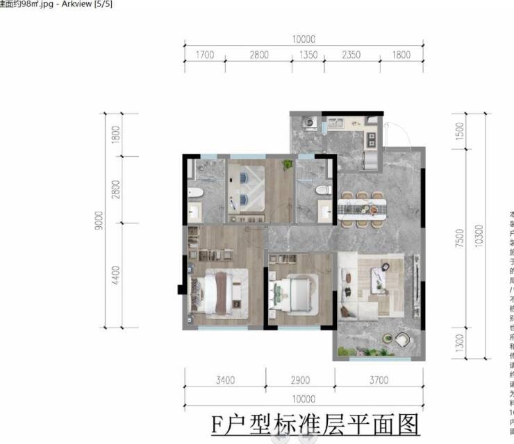 锦樾:建面约89㎡三室两厅一卫(16F小高层,2梯4户)