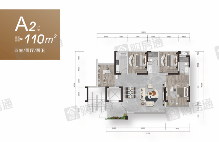 建面约110平套四