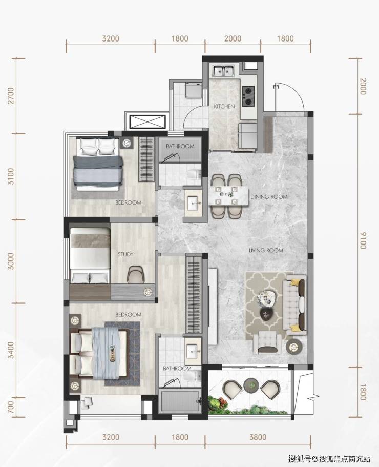 ### 【户型甄选】 - **112㎡三居**:双明卫+明厨设计,南北对流,采光通风俱佳