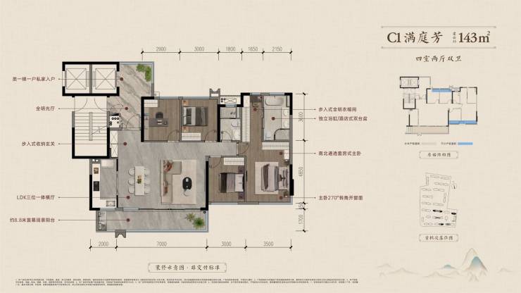 建面约143平套四