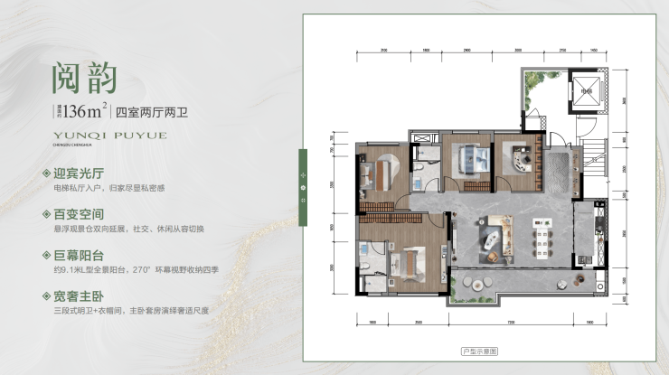 建面约136平套四
