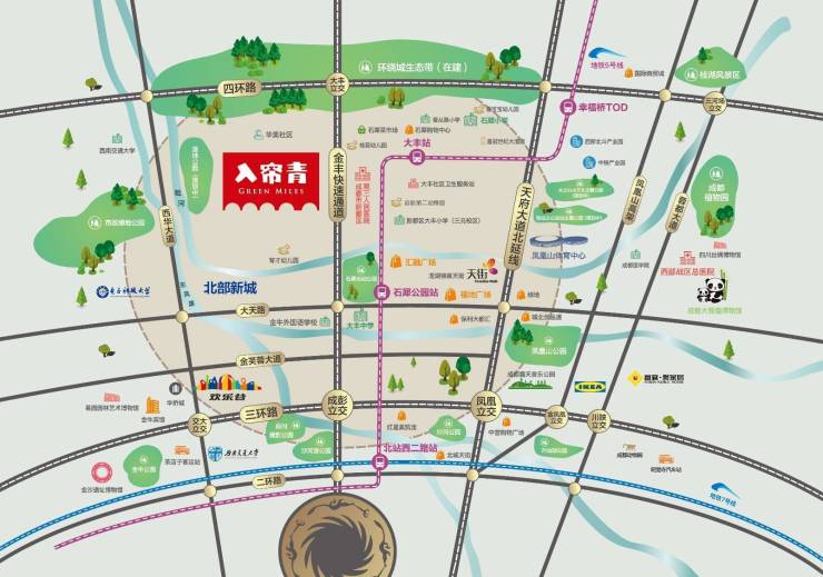 在配套方面,入帘青同样表现出色。项目3公里范围内有汇融广场、龙湖天街等主要商业体,为居民提供了丰富的购物和娱乐选择。同时,小区内还打造了一条体量不小的商业街,后期将作为商铺出售,进一步提升居住便捷度。在教育资源方面,周边有成都市新都区扬帆学校等教育机构,能够满足居民对教育的需求。