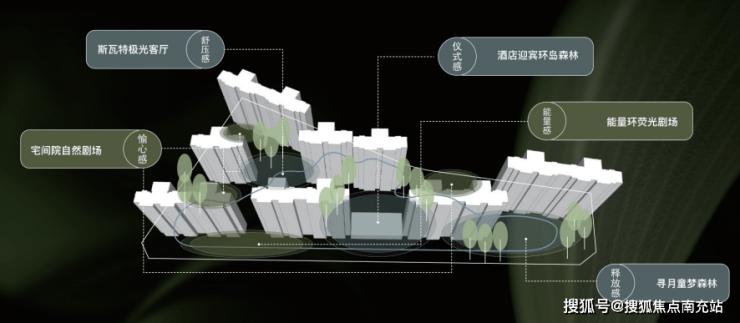 项目创新采用台地式设计,打造17500㎡挪威斯瓦特森林主题园林,包含:- 叠水景观与下沉休憩区- 3大主题中庭与2个景观剧场- 极光星空主题泛会所(约1400㎡)配备完善的功能设施,满足业主社交、休闲等多元需求。