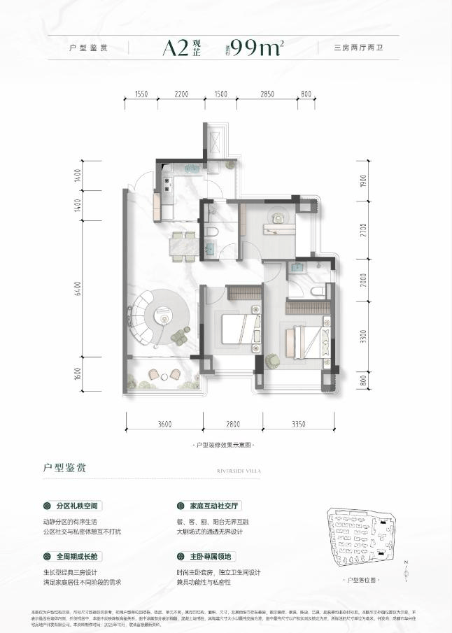 建面约99平套三