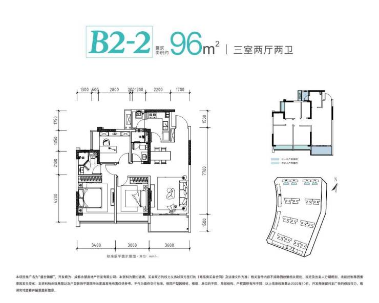 【B2 - 2—建面约96㎡三室两厅两卫 有为青年家】