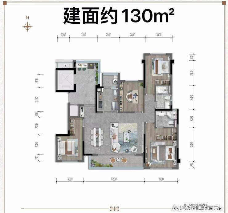 建面130平四房两厅两卫