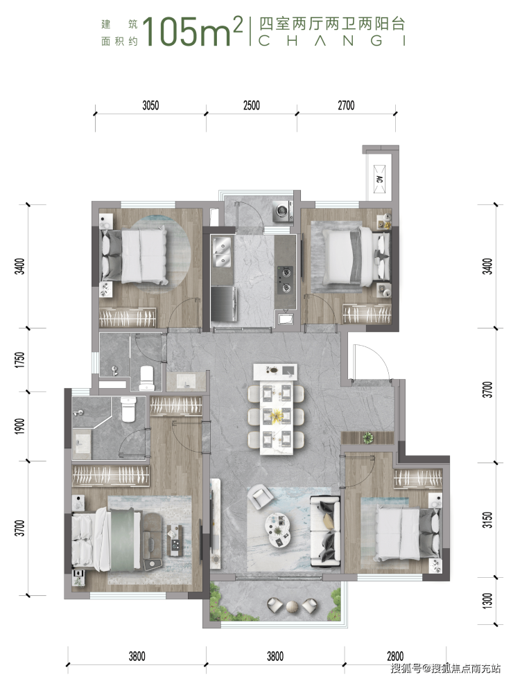 【105㎡星辉-四室两厅两卫两阳台】