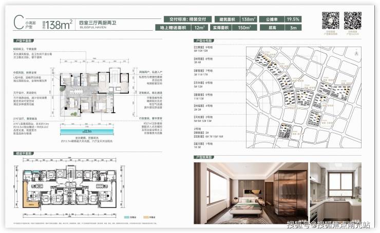 ?138㎡-四室三厅两卫板式结构,坐北朝南,区域唯一一家270度景观阳台,休闲空间可以从室内向延展空间,充分满足了业主对于户外休闲与观景的多元需求
