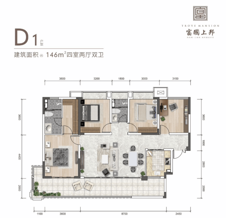 建面约146平套四