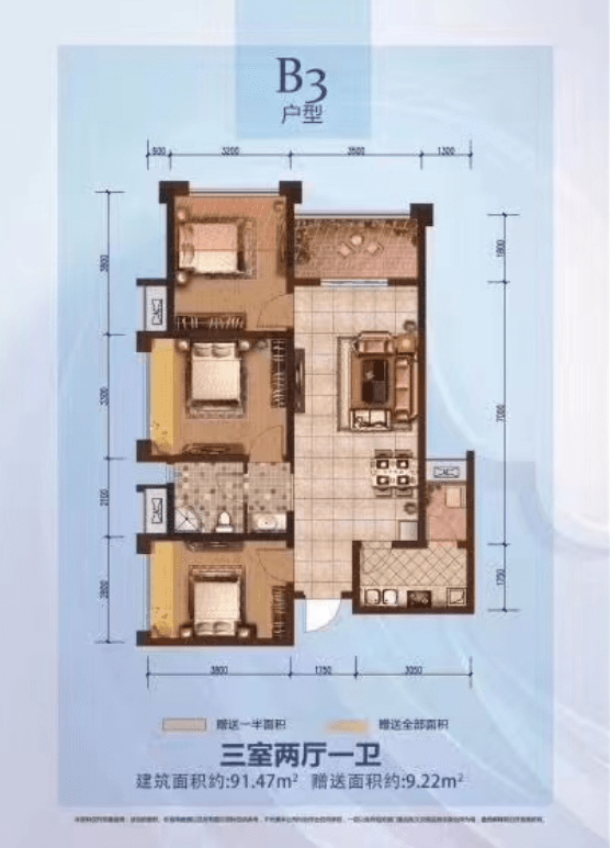 产品户型:76m²、81m²、91m²(均为套三)