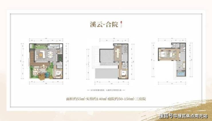 建面约55㎡,实得约142㎡左右,花园约50㎡、露台约20㎡,总高3层,套三,可安装电梯。