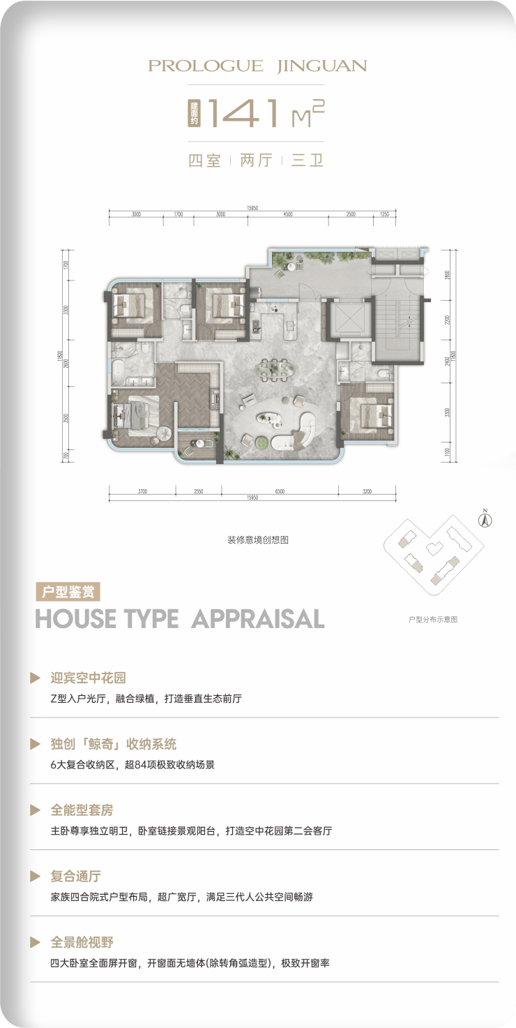 建面约141平套四