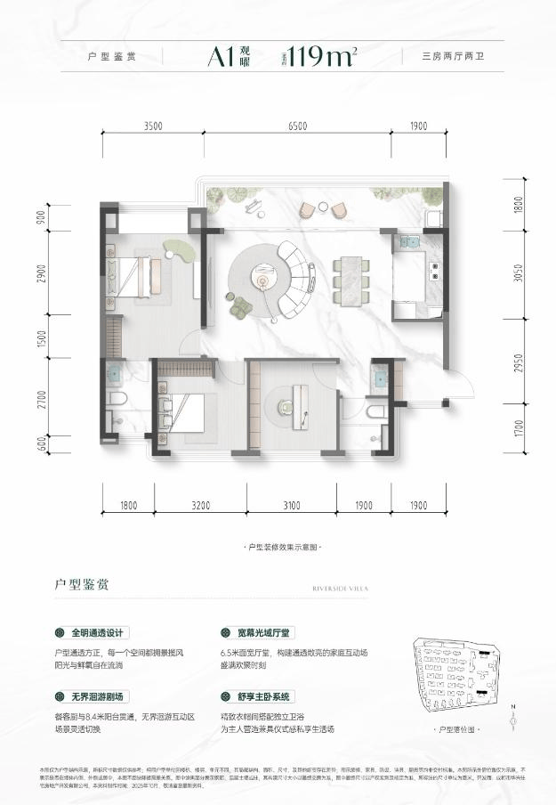 建面约119平套三
