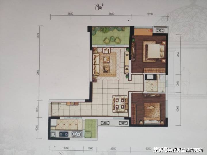 78㎡户型 总价85万套二客厅阳台,可贷款36万。