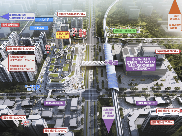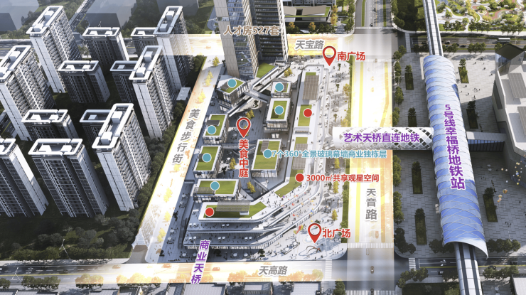 TOD枢纽层:与5号线地铁直连,艺术天桥直连地铁,锁住天音路以东十几万客流,与本案一同交付。