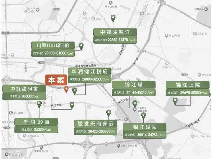 项目南侧,则是目前锦江区重点发展的区域,沿锦江大道为轴线打造的“一道九园”是“再造一个产业锦江”的重要载体之一,承载着国家人工智能创新应用先导区的建设重任。不仅是锦江区未来经济发展的重要方向,因为地理位置的优越性,可以与天府软件园遥相呼应,对推动成都软件产业发展也将形成强有力的支撑。