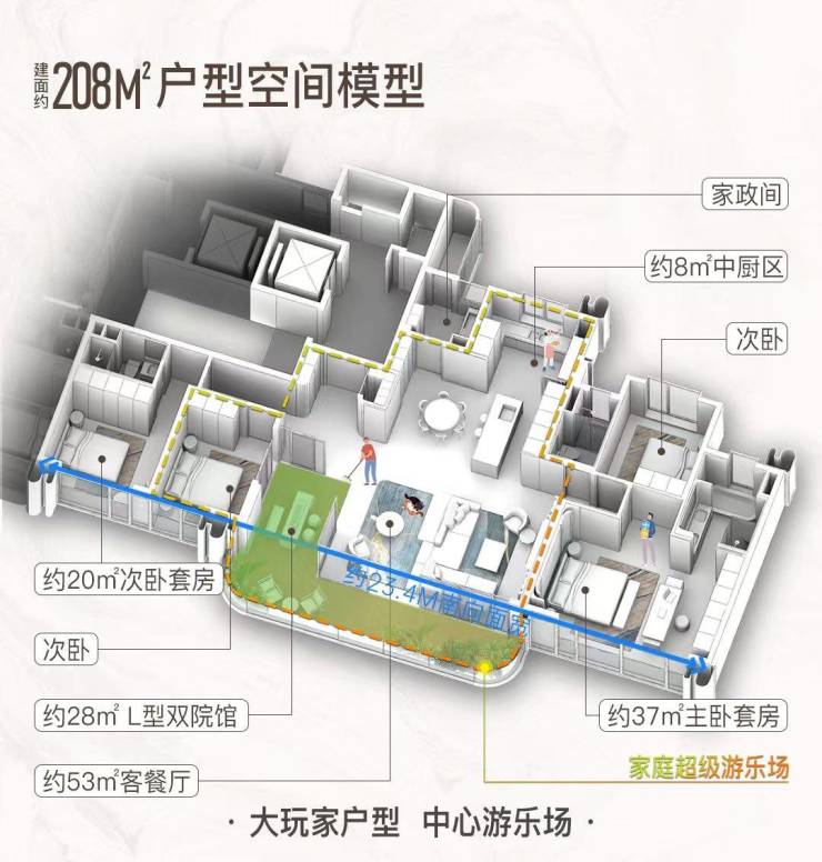 3.顶豪产品力:208-318㎡纯大平层圈层纯粹,户型全原创:23.4m南向巨面宽、双舱双花园、70米采光周长,8000元/㎡精装(劳芬/高仪)+华为鸿蒙智能,得房率碾压同圈