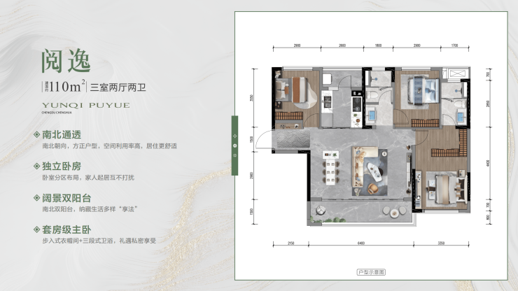 建面约110平套三