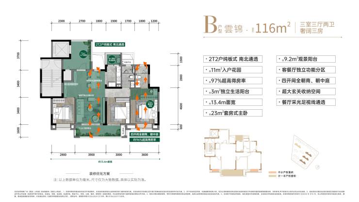 112-140m²低密公园板式小高层,私梯花园入户,全明采光,户型方正,区域内臻稀的112m²/116㎡、2T2板式、高配产品。
