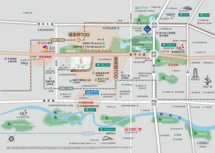 交通: 三横两纵成熟交通环绕,三横:金牛大道、西华大道(沙西线)、蜀西路(羊西线)
