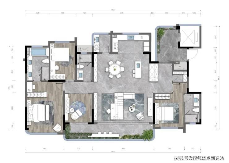 户型亮点包括:约16米南向采光面,270°观景前厅,约44㎡方正厅区衔接9.4米景观阳台,可拓展为57㎡的复合社交空间。主卧套房约23㎡,配备独立衣帽间;次卧套房超16㎡,保障家庭成员私密需求。