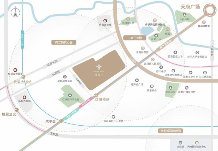 项目紧邻地铁3/10号线红牌楼站(直线约480米),步行可达,6站直达春熙路;距7号线武侯大道站约1.4公里,便捷换乘全城。二环高架、武侯大道、佳灵路等主干道环绕,自驾15分钟直达太古里、金融城,20分钟衔接双流机场,构建一刻钟主城生活圈,跨区通勤无压力。