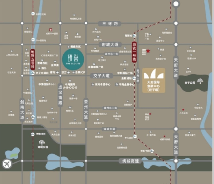 顶级配套:1号线+5号线双地铁环绕,毗邻W酒店及各类成都顶级生活配套