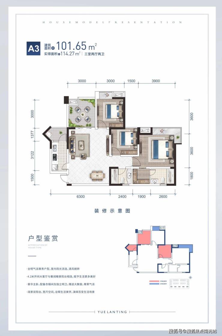 ·6#1单元1701:101.65㎡西北朝向观景住宅